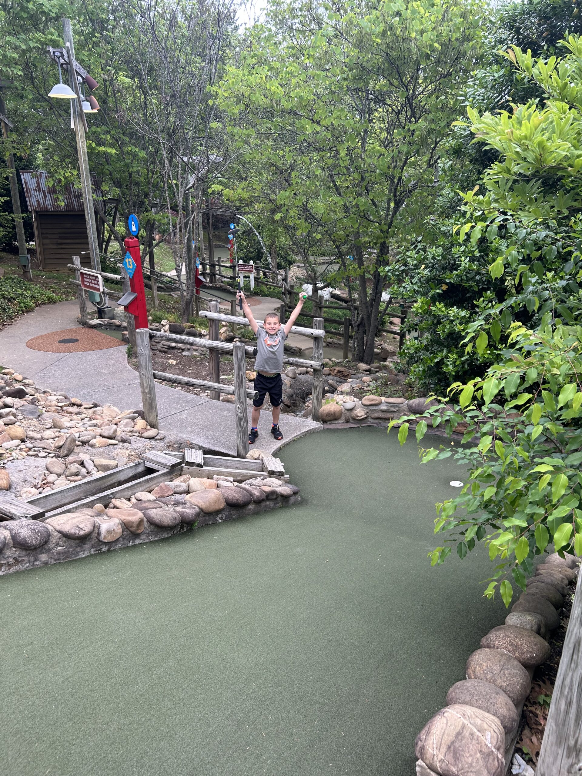 My family loves to play mini golf. We have so many mini golf areas here in the Sevier County area, AKA Smoky Mountains if you are not familiar with Sevier County. This is our experience at Ripley’s Old MacDonald’s Farm Mini Golf.